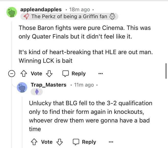 BLG在S14全球总决赛中以3-1的战绩淘汰HLE,晋级4强。很快这场比赛也引发了大量海外网友们的热议,一起来看看他们的观点是什么吧!